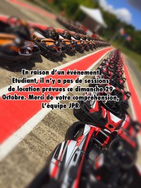 En raison d’un événement étudiant qui privatise le circuit, il n’y aura pas de sessions de location demain, dimanche 29 octobre.